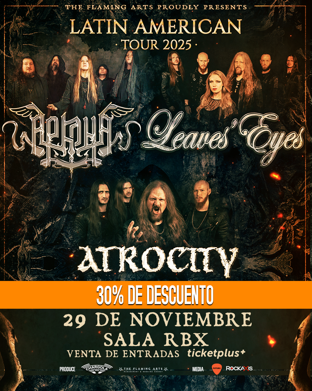 Tres bandas del mundo del metal, cada una perteneciente a un subgénero distinto, han asegurado su regreso en conjunto a Chile: hablamos de Arkona, Leaves’ Eyes y Atrocity, quienes llegarán el próximo 29 de noviembre a nuestro país en el marco de una gira latinoamericana que también pasará por Brasil, Argentina y Colombia.