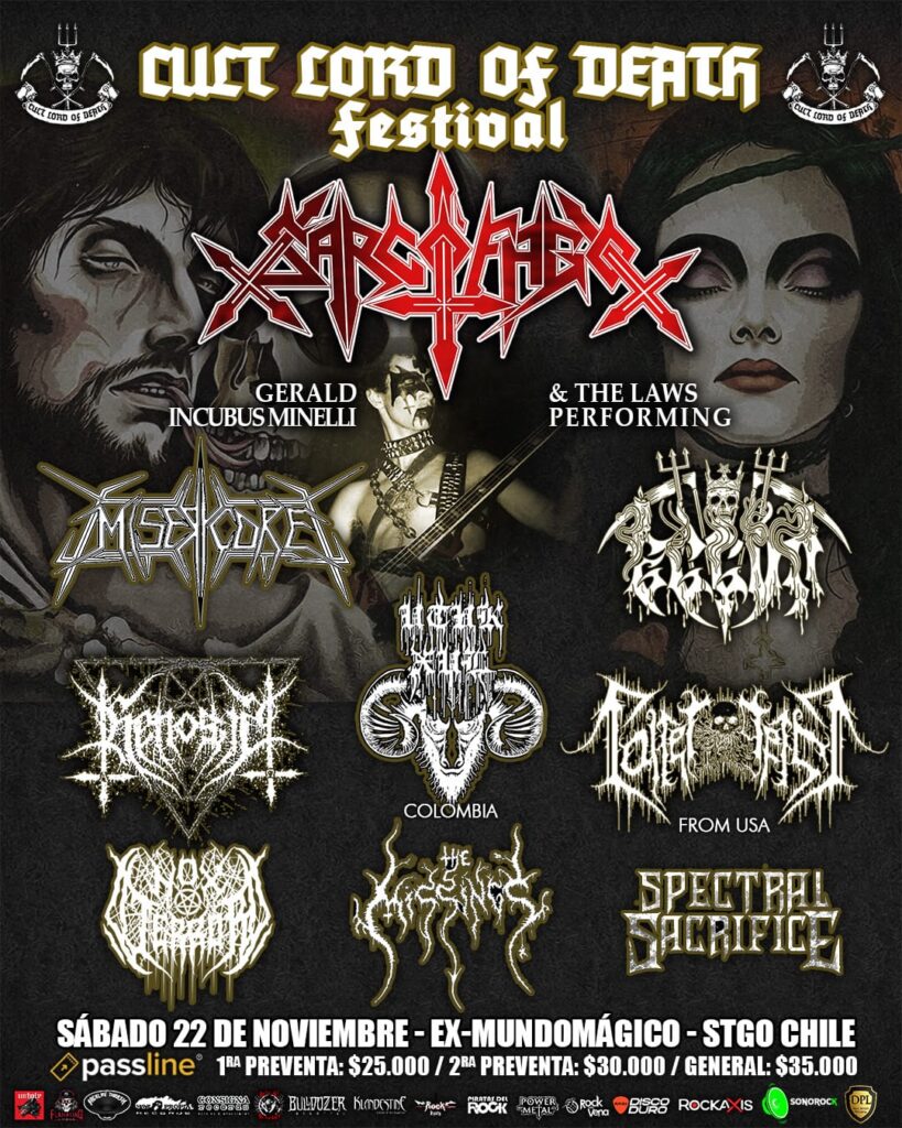 Tras haber realizado giras por España y Finlandia, Gerald “Incubus” Minelli y The Laws, se presentarán en nuestro territorio y encabezaran la primera edición de “Cult Lord Of Death Festival”, donde seremos testigos privilegiados de una jornada de metal extremo liderada por la oscura esencia viva de Sarcófago, que se hará presente bajo el mando del icónico músico Gerardo “Incubus” Minelli, interpretando los clásicos de la emblemática banda brasileña junto a The Laws.