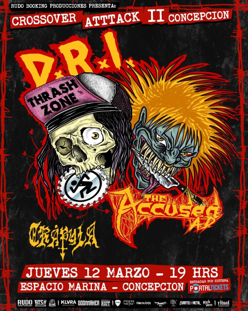 La llegada de D.R.I. a la región del Biobío forma parte del Crossover Attack II, evento que convertirá a Concepción en un punto de encuentro para las corrientes más brutales del género. Su debut representa un hito esperado por décadas, donde el mosh será el protagonista. A la jornada se suma The Accüsed AD, banda pionera del crossover thrash y hardcore punk surgida en Seattle, reconocida por su sonido e impronta marcada por el horror y el espíritu splatter punk. Liderados por el histórico Blaine Cook y acompañados por el bajista Alex Sibbald, continúan más vigentes que nunca con nuevo material y una presencia escénica poderosa.