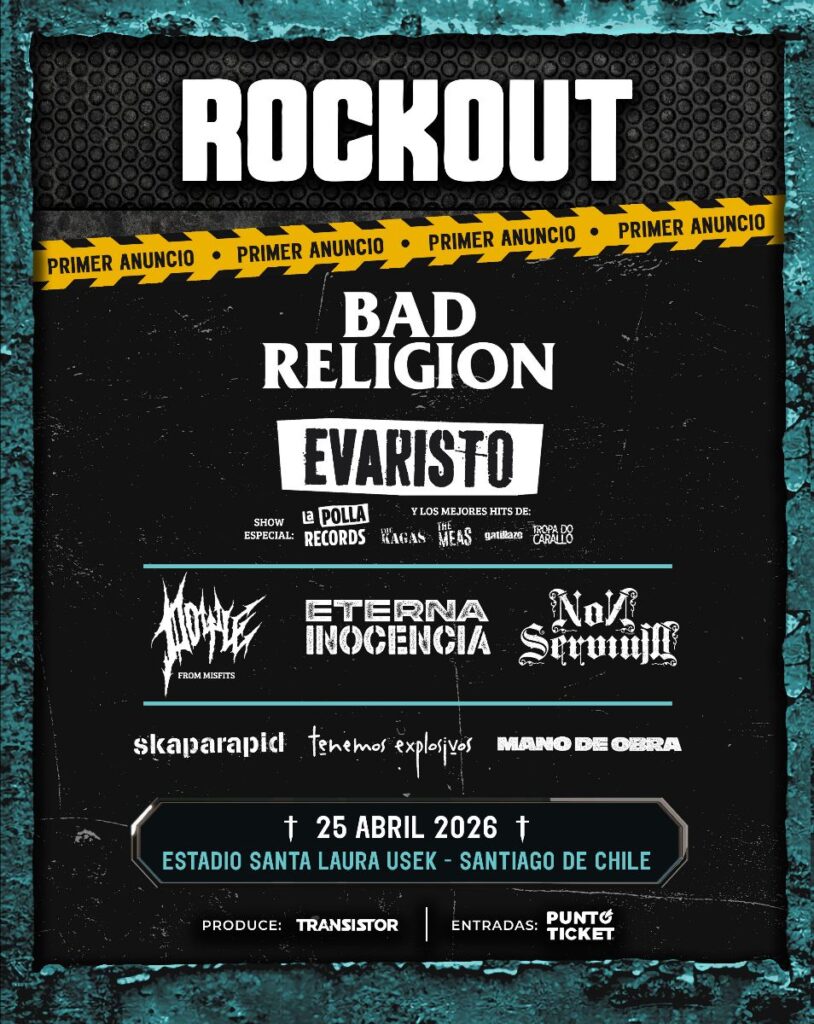 Llegó el esperado momento: ROCKOUT FESTIVAL vuelve este 2026 para remecer a la fanaticada local con su cuarta edición. El evento musical, que se realizará nuevamente en el ESTADIO SANTA LAURA USEK el próximo 25 de abril, hoy presenta sus primeros confirmados para este encuentro que promete convertirse en uno de los imperdibles del año.
